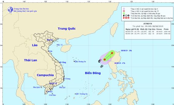 Dự báo trong 12 giờ tới, áp thấp nhiệt đới di chuyển theo hướng Đông Bắc, mỗi giờ đi được 10km và suy yếu dần thành một vùng áp thấp. Đến 19 giờ ngày 8.8, vị trí tâm vùng áp thấp ở khoảng 18,2 độ Vĩ Bắc; 120,5 độ Kinh Đông, trên khu vực phía Bắc đảo Lu-dông. Sức gió mạnh nhất vùng trung tâm áp thấp dưới cấp 6 (dưới 40km/giờ).