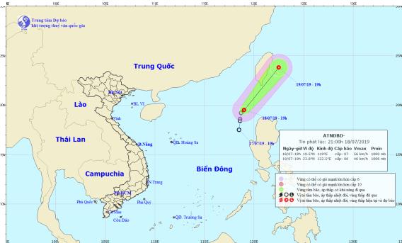 Dự báo trong 24 giờ tới, áp thấp nhiệt đới di chuyển theo hướng Bắc, mỗi giờ đi được khoảng 20-25km. Đến 19 giờ ngày 19/7, vị trí tâm áp thấp nhiệt đới ở khoảng 23,8 độ Vĩ Bắc; 122,5 độ Kinh Đông, trên vùng biển phía Đông Đài Loan. Sức gió mạnh nhất vùng gần tâm áp thấp nhiệt đới mạnh cấp 6 (40-50km/giờ), giật cấp 8.