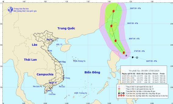 Hồi 7 giờ ngày 17.7, vị trí tâm bão ở vào khoảng 18,2 độ Vĩ Bắc; 123,4 độ Kinh Đông, trên vùng biển phía Đông Bắc đảo Lu-dông (Phi-líp-pin). Sức gió mạnh nhất vùng gần tâm bão mạnh cấp 8 (60-75km/giờ), giật cấp 10.