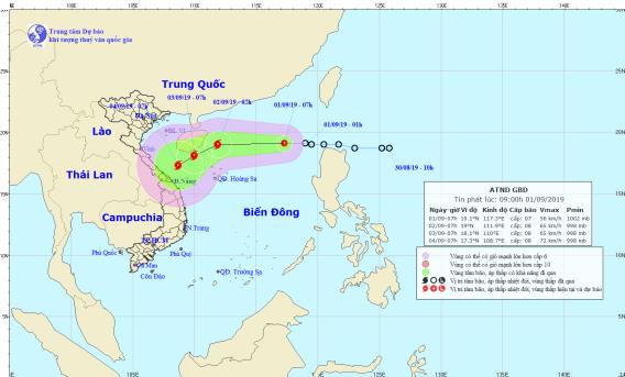Hồi 7 giờ ngày 1.9, vị trí tâm áp thấp nhiệt đới ở vào khoảng 19,1 độ Vĩ Bắc; 117,3 độ Kinh Đông, cách quần đảo Hoàng Sa khoảng 550km về phía Đông Đông Bắc. Sức gió mạnh nhất vùng gần tâm áp thấp nhiệt đới mạnh cấp 6-7 (40-60km/giờ), giật cấp 9. Bán kính gió mạnh cấp 6, giật cấp 8 khoảng 100km tính từ tâm áp thấp nhiệt đới.