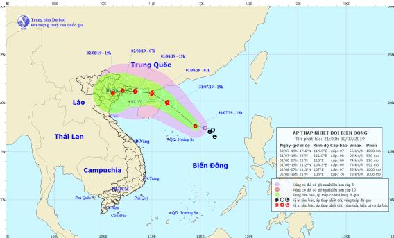 Dự báo trong 24 giờ tới, áp thấp nhiệt đới di chuyển theo hướng Tây Tây Bắc, mỗi giờ đi được 15-20km và mạnh lên thành bão. Đến 19 giờ ngày 31.7, vị trí tâm bão ở khoảng 20,0 độ Vĩ Bắc; 111,6 độ Kinh Đông, ngay vùng biển Đông Bắc đảo Hải Nam. Sức gió mạnh nhất vùng gần tâm bão mạnh cấp 8 (60-75km/giờ), giật cấp 10.