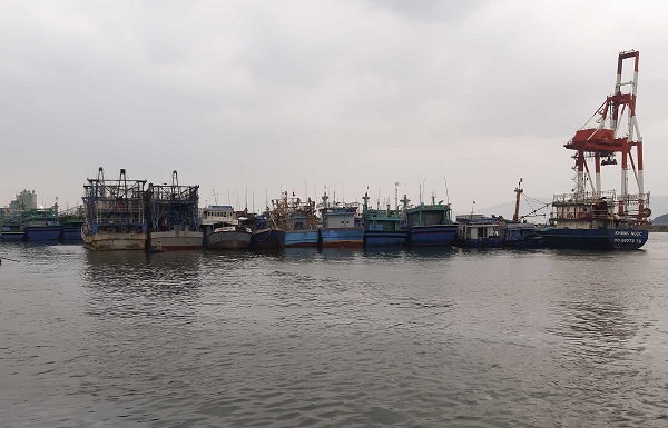 Tại Cảng cá Quy Nhơn, các tàu thuyền được hướng dẫn đến nơi neo đậu tránh trú bão số 6 an toàn
