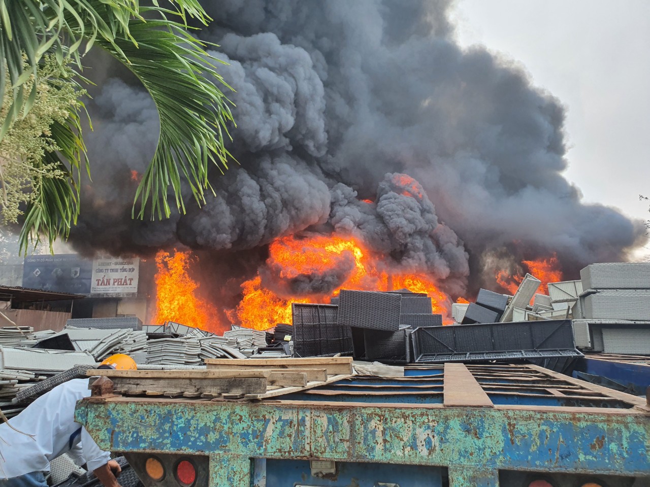 Theo thông tin ban đầu, vụ cháy xảy ra lúc 9 giờ 30 phút sáng hôm nay. Ngọn lửa đang cháy mạnh, cột khói hàng trăm mét màu đen kịt bao trùm khu nhà. Khu vực cháy là kho chứa mây đan giả nhựa cùng nhiều vật liệu dễ cháy nên ngọn lửa bốc cháy mạnh.
