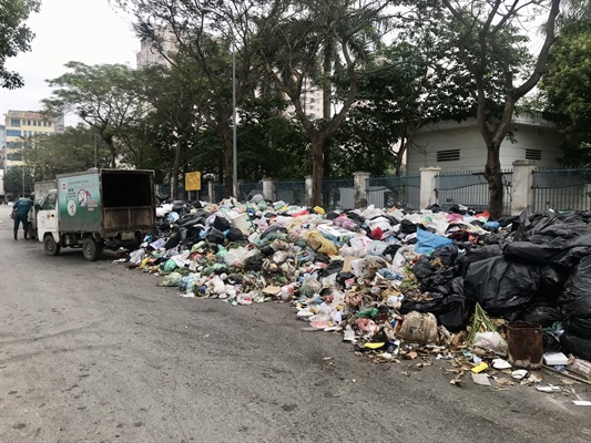 Bãi rác được tập kết trên phố Đỗ Xuân Hợp