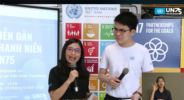 Hàng trăm bạn trẻ Việt Nam trên khắp mọi miền của đất nước đã tham gia Diễn đàn Thanh niên trực tuyến nhân kỉ niệm 75 năm thành lập Liên Hợp Quốc (UN75) để cùng nhau thảo luận về tương lai mà họ mong muốn. Đây là dịp để các bạn trẻ chia sẻ quan điểm của mình về các vấn đề phát triển mà mình quan tâm, bao gồm biến đổi khí hậu và môi trường; về bình đẳng và về kiến tạo một tương lai mà mình mong muốn.