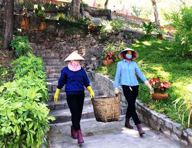 Quét dọn rác tại điểm du lịch, đảm bảo vệ sinh để đón khách