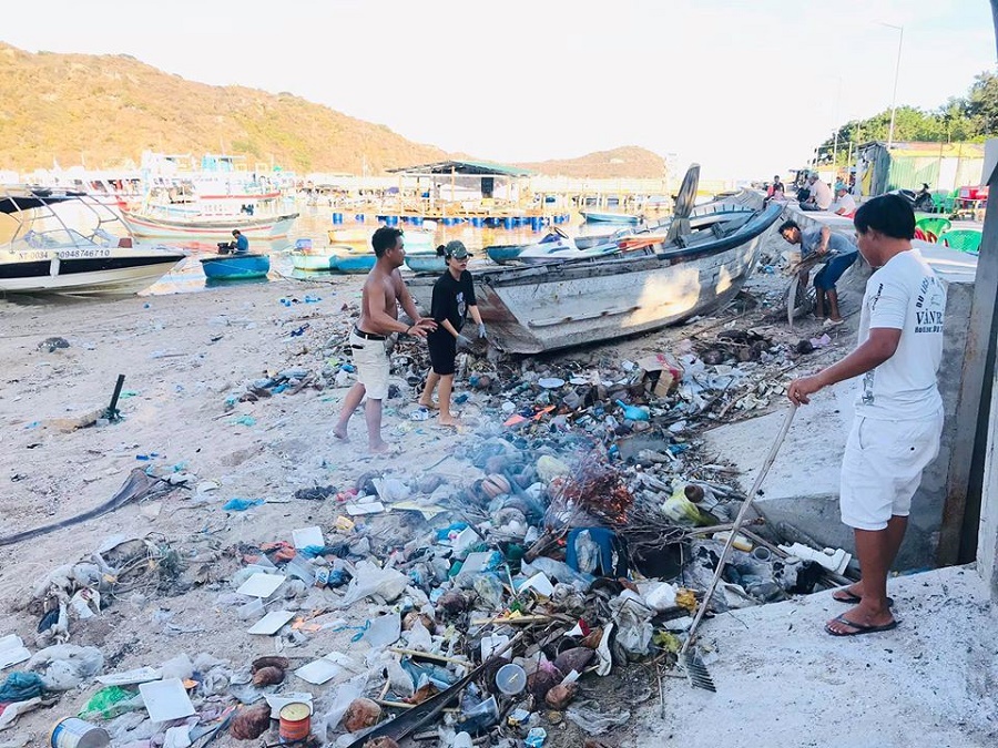 Anh Vương cho biết, rác thải tại vịnh Vĩnh Hy chủ yếu là những chai nhựa, bịch nilon, lon bia, lon nước ngọt, đồ ăn thừa của khách du lịch khi tham quan vịnh, bên cạnh đó là các loài tảo, mơ được gió mùa thổi vào. Anh Vương kể rằng, đoàn nhặt rác của anh mỗi lần gom được khoảng 30-40 bao rác (mỗi bao nặng khoảng 20kg), những tháng cao điểm du lịch, lượng rác gom được trên 1 tấn/lần...