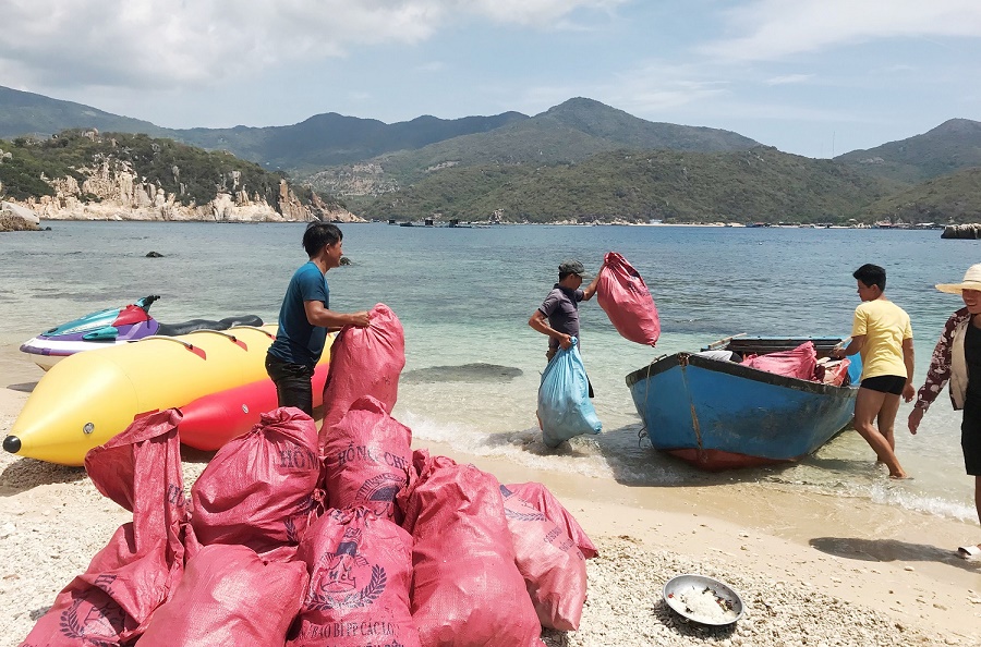 Anh Huỳnh Văn Vương - một thành viên Đoàn thanh niên thôn Vĩnh Hy cho biết: “ Cứ cách khoảng 2 - 3 tháng chúng tôi làm một lần. Nhưng khi dịp hè hay thời điểm sau lễ, tết, lượng rác thải là khá lớn, cộng thêm khi gió mùa thổi đưa rác ra ngoài biển vào vịnh làm rác nhiều hơn, chúng tôi phải làm nhiều lần hơn. Thấy rác nhiều, mọi người cũng tham gia hưởng ứng đông hơn. Ở đây mọi người tự vận động, làm tự nguyện là chính. Người thì góp công, người thì góp tiền thuê xe chở rác, người góp thuyền, Cano chở ra các bãi tắm. Việc nhặt và gom rác vào những dịp hè nắng nóng hay lặn xuống đấy biển để làm sạch rạn san hô cũng có vất vả nhưng ai nấy cũng vui vì đã góp công làm sạch vịnh”.