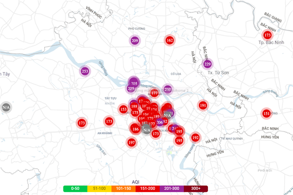 Nhiều ngày nay, chất lượng không khí ở Hà Nội đang ở ngưỡng xấu và kém các điểm quan trắc.