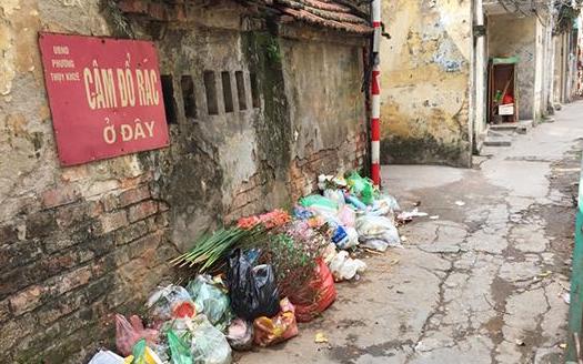 Người dân vứt rác ra đường dù đã có biển cấm