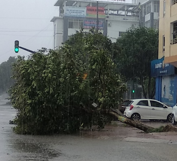 Cây bật gốc tại đường Lý Tự Trọng, TP Vinh