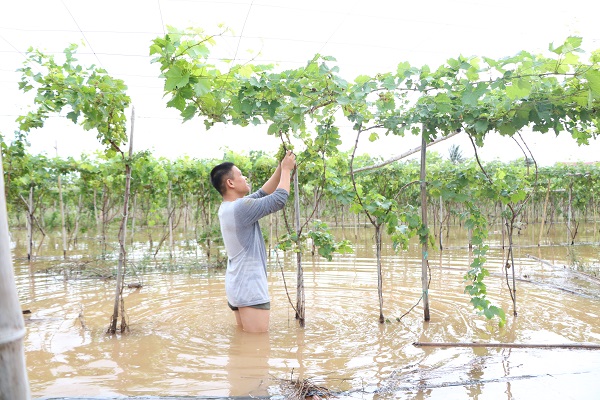 Theo người dân ở đây cho biết, đợt bão số 9 xảy ra vào tháng 11-2018 vừa qua các vườn nho của người dân nơi đây cũng đã bị chìm trong nước suốt 4 ngày liên tiếp. Sau khi cơn bão số 9 đi qua người dân đã đầu tư hàng trục triệu đồng để mua phân bón, thuốc trừ sâu để cải tạo lại vườn. Tuy nhiên chưa được 1 tháng thì vườn nho tiếp tục ngập trong nước.