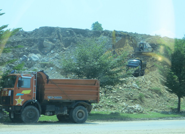 Có mặt tại xã Lộc Vĩnh, chúng tôi ghi nhận tình trạng nhiều xe tải chạy ra vào cảng Chân Mây chở theo khối lượng đất đá khá lớn. Điểm xuất phát của đoàn xe này là bãi khai thác đá ở thôn Phú Hải 1 (xã Lộc Vĩnh). Tại đây, đơn vị khai thác đã dùng máy móc múc đi lượng đất khá lớn, đồng thời tiến hành hoạt động nổ mìn để lấy đá.