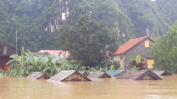 Nhà dân ngập trong vùng rốn lũ tại Tân Hóa, huyện Minh Hóa, Quảng Bình