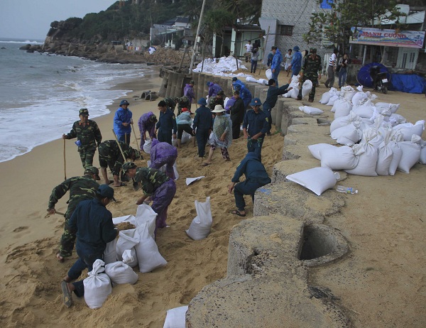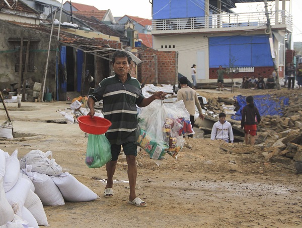 Ghi nhận của PV Báo Văn Hóa, chiều ngày 9.11, người dân xã Nhơn Hải, TP. Quy Nhơn (Bình Định) cùng các lực lượng bộ đội biên phòng đang khẩn trương chuyển các vật dụng, đồ đạc đến nơi cao ráo, đảm bảo an toàn trong bão số 6. Không dừng lại ở đó, lực lượng vũ trang đang tích cực tiến hành gia cố lại bờ kè Hải Nam vừa bị đánh sập để đảm bảo an toàn cho những ngôi nhà nằm sát biển.