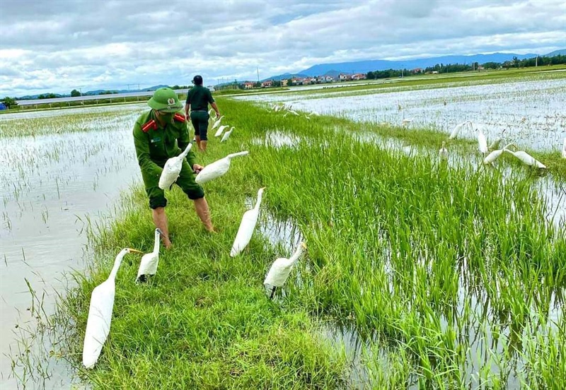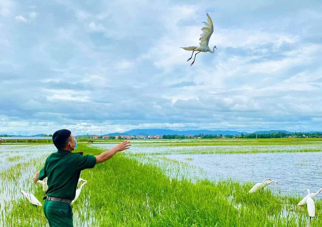 Một con cò được giải cứu, thả tự do, trở về môi trường tự nhiên.