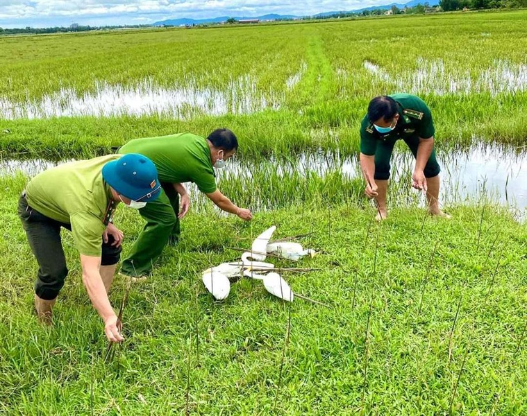 Ngày15.10, thông tin từ Công an huyện Quảng Trạch (tỉnh Quảng Bình) cho biết: Công an xã Quảng Xuân phối hợp với Hạt Kiểm lâm huyện Quảng Trạch, Đồn Biên phòng Roòn và chính quyền, đoàn thể xã Quảng Xuân đã tổ chức lực lượng tiến hành thu gom và tiêu hủy hàng ngàn dụng cụ bẫy chim, cò trên đồng ruộng.