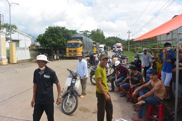 Người dân chặn các xe tải chở nguyên liệu ra vào Nhà máy Cồn Đại Tân