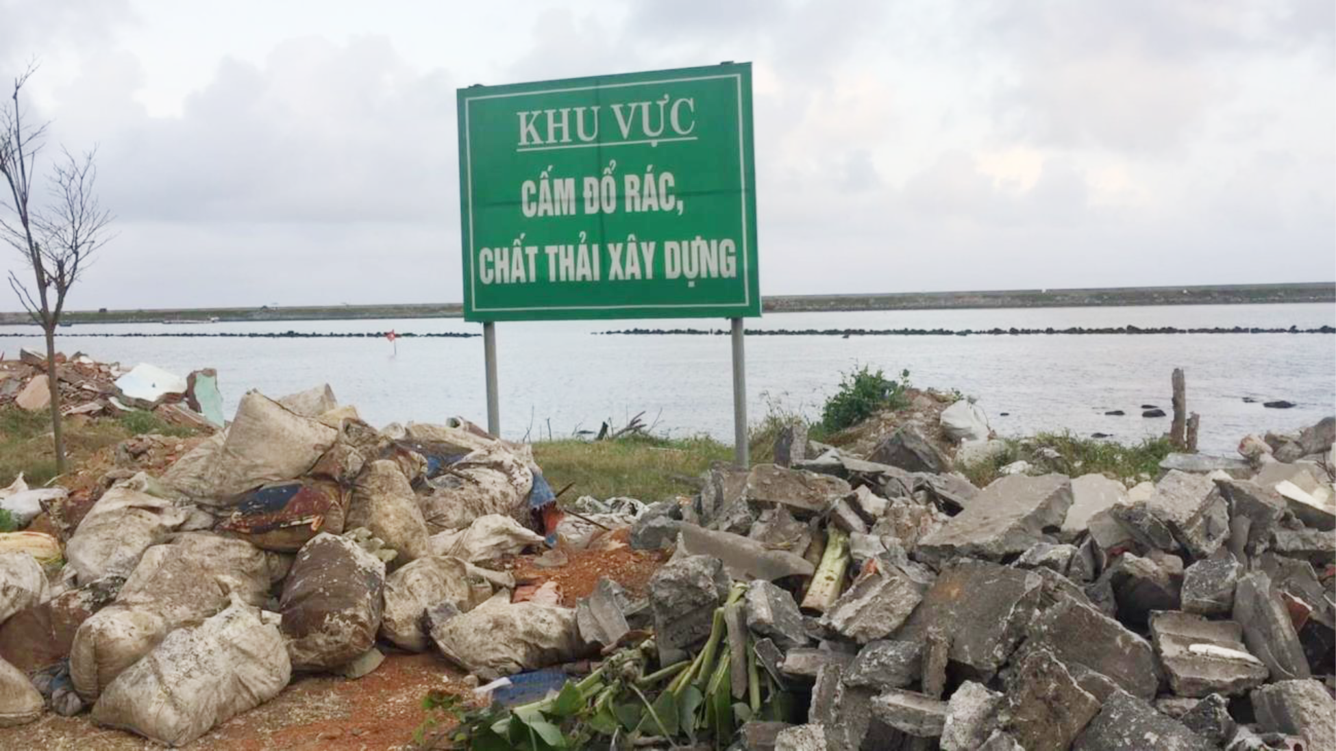 Những biển báo khu vực cấm đổ rác, chất thải xây dựng được đặt ở nhiều nơi trên đảo Lý Sơn, nhưng gần như không có tác dụng. Khu vực vũng neo đậu tàu thuyền cũng đang bị chất thải bồi lấp. Dọc phía Đông của đảo cũng không còn chỗ để chứa chất thải xây dựng. Công trình cũ đập bỏ đi thì khối lượng chất thải này lại đổ ra hòn đảo. Ông Võ Tấn Đạo, thôn An Hải, huyện Lý Sơn bày tỏ: “Chất thải đổ tràn lan, xe ba gác hay đổ trộm phải bắt và xử phạt chứ để mãi vậy sao được. Huyện đảo phát triển du lịch như thế này làm mất hình ảnh, mỗi khi có gió, bụi lại bay mù mịt gây ô nhiễm”.