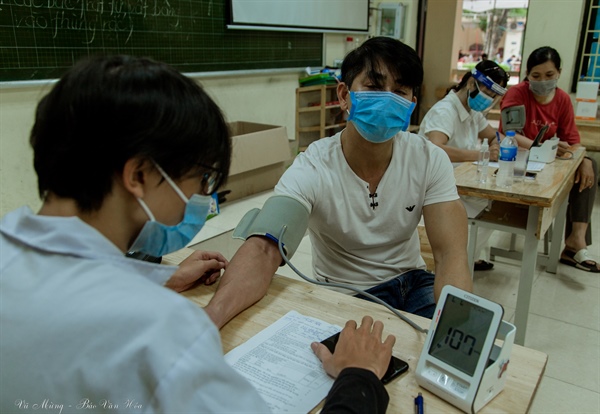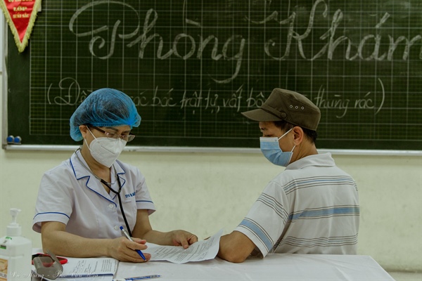 Để đảm bảo an toàn cho người dân, việc kiểm tra sức khỏe trước khi tiêm được thực hiện nghiêm túc.