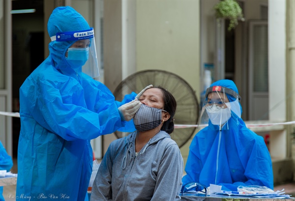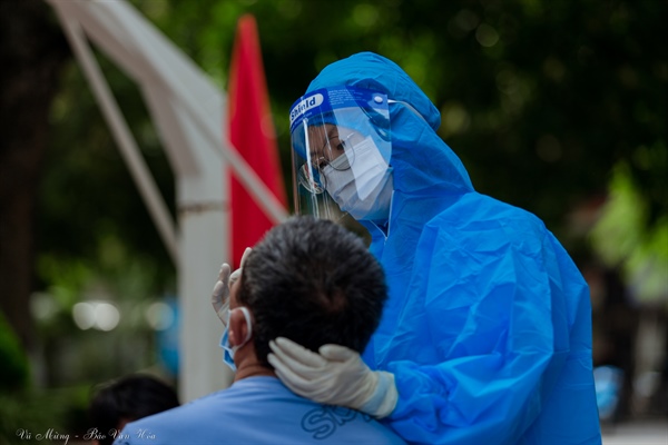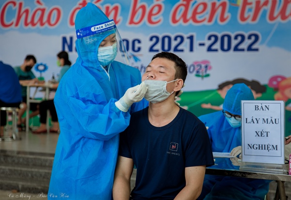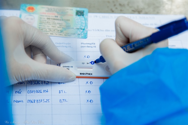 Toàn bộ mọi người đều được thực hiện Test nhanh Covid tại các điểm tiêm.
