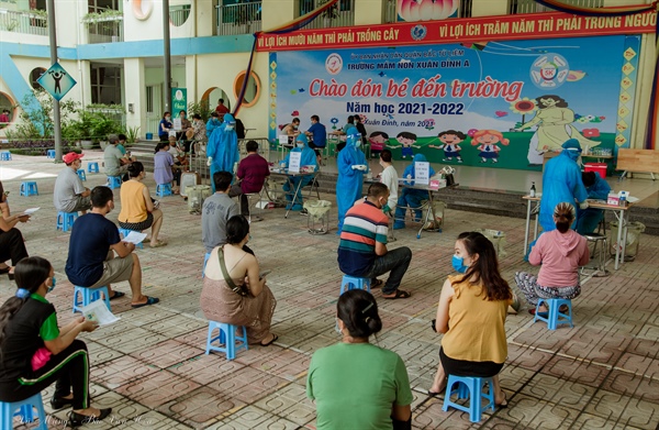 Thực hiện Công điện số 20/CĐ-UBND TP Hà Nội và Kế hoạch 328/KH-UBND ngày 07.9.2021; Kế hoạch số 330/KH-UBND ngày 08.9.2021 của UBND quận Bắc Từ Liêm về việc, tổ chức tiêm chủng vắc xin phòng Covid-19 mũi 01 cho toàn bộ người dân từ 18 tuổi trở lên trước ngày 15.9, từ ngày 9.9 phường Xuân Đỉnh đã tổ chức 5 điểm tiêm chủng tên địa bàn phường.