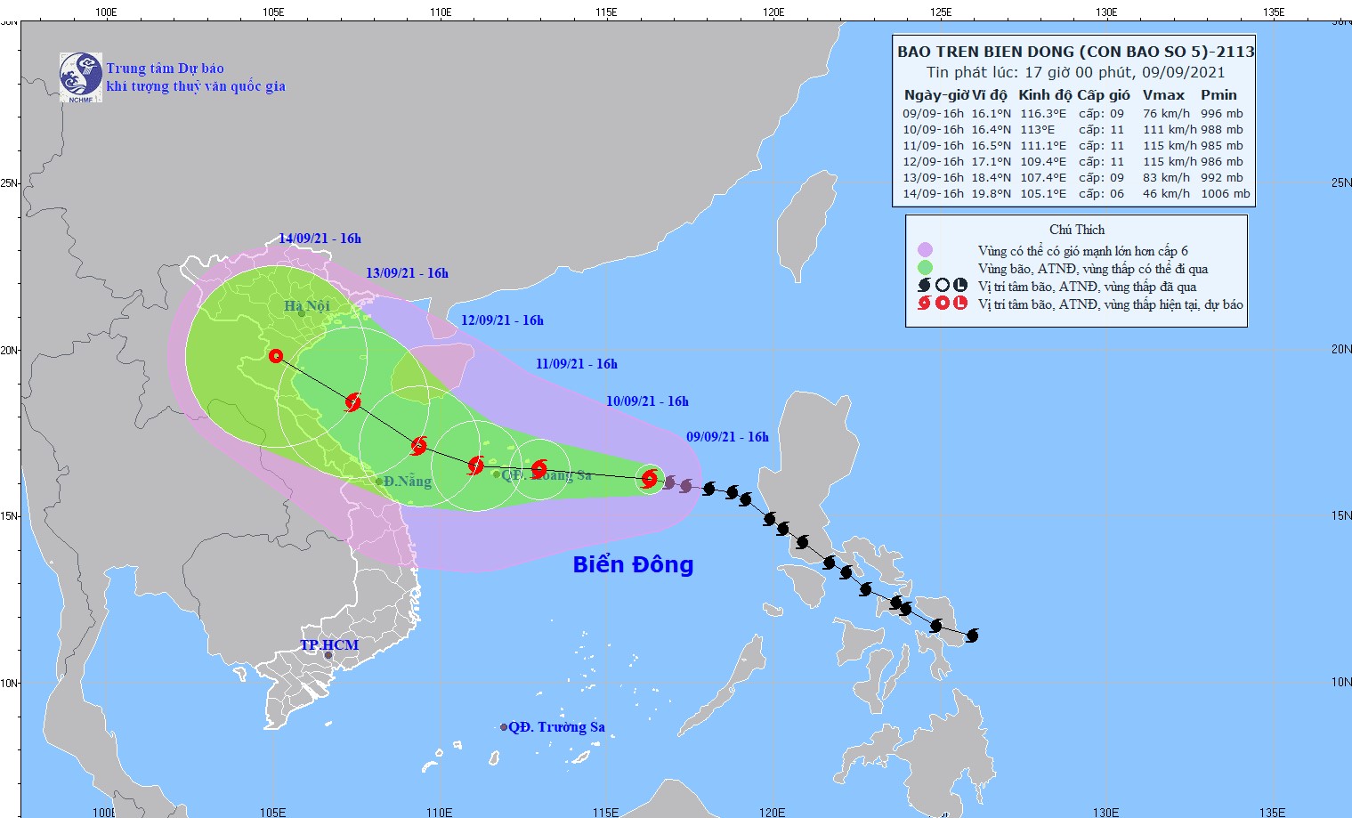 Hướng di chuyển của bão số 5. Ảnh: nchmf.gov.vn
