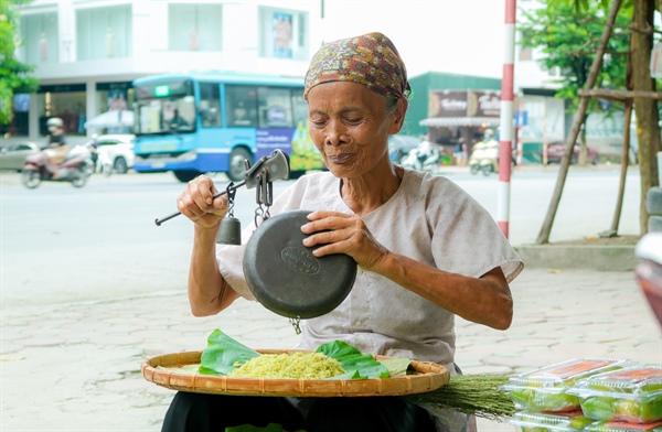 Cụ Nguyễn Thị Khà đã có hơn 60 năm gắn bó với cốm Vòng