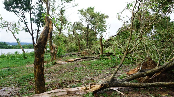 Một cột điện khác thì bị đổ sập cùng với cây xanh