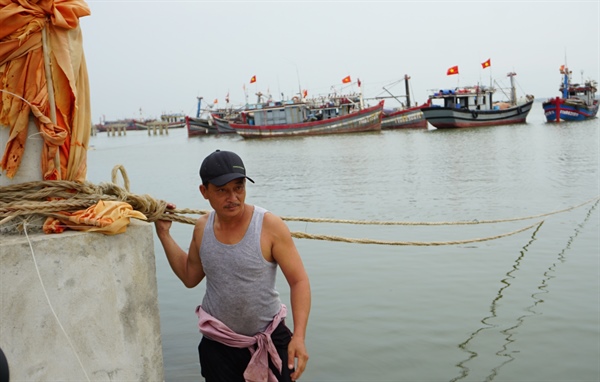 “Cứ 3-4 tàu chúng tôi sẽ buộc sát vào nhau thành một cụm, không thể buộc một lúc nhiều tàu vì gió mạnh mà lật thì lật cả đoàn, cũng không thể neo đậu rời rạc riêng mỗi tàu, rất nguy hiểm”- ông Phán nói.