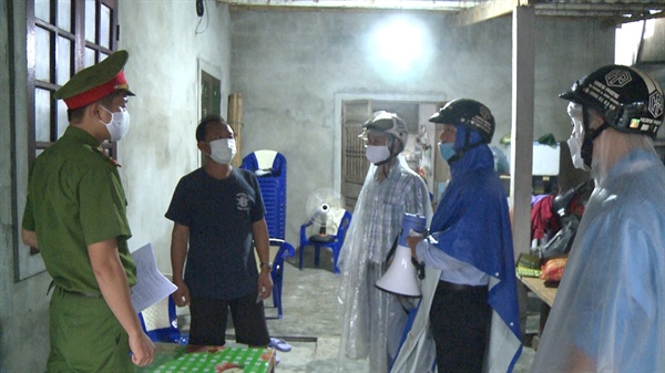 Cán bộ đến vận động, di dời người ở ven biển xã Phú Hải, huyện Phú Vang đến nơi an toàn để tránh trú bão