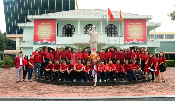 Đảng ủy, Ban giám hiệu nhà trường, cán bộ quản lý cùng giảng viên, viên chức và HSSV dâng hoa báo công tại tượng đài Bác Hồ