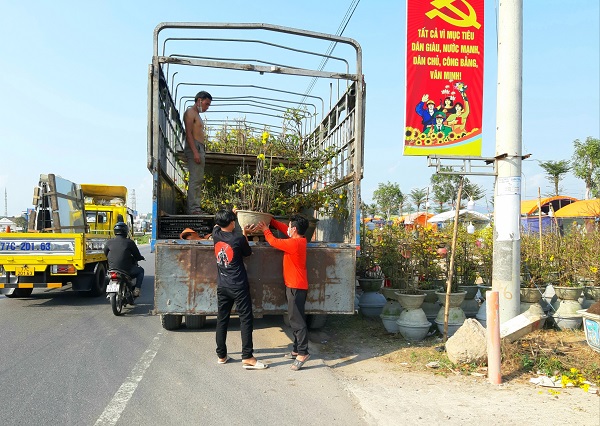 Tại các làng nghề trồng Mai ở xã Nhơn An thuộc thị xã An Nhơn, những ngày này các nông hộ đang hối hả, tất bật vận chuyển những chậu mai vàng cho thương lái để kịp xe hàng chở ra các tỉnh phía Bắc tiêu thụ. Đến vườn mai bonsai Tuấn Ngọc, chúng tôi được ông Nguyễn Trí Tuấn, chủ vườn vui vẻ tâm sự: Cứ tưởng năm nay dịch bệnh nhu cầu chưng Mai sẽ giảm mạnh. Nào ngờ đâu, đến phút cuối các thương lái từ các tỉnh phía Bắc tìm đến tận ruộng để thu mua Mai vàng. Có gia đình được thương lái thu mua cả ruộng, vì thế những ngày gần đây Mai vàng gần như “cháy hàng” không đủ cung ứng. Mai vàng bán được và không trượt giá, nên bà con trồng Mai vàng tại đây rất vui.