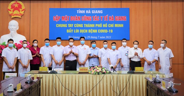Thực hiện Công văn số 5948/BYT-TCCB ngày 25.7.2021 của Bộ Y tế về việc hỗ trợ nhân lực chống dịch Covid-19 tại thành phố Hồ Chí Minh, Sở Y tế Hà Giang đã thành lập đoàn công tác gồm 42 cán bộ y tế do các đơn vị y tế trực thuộc đăng ký tình nguyện, trong đó có 17 bác sĩ và 25 điều dưỡng, kỹ thuật viên y, y sĩ đa khoa, y tế công cộng, sẽ tham gia hỗ trợ công tác chống dịch Covid-19 tại TP. Hồ Chí Minh.