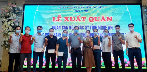 Tại lễ xuất quân, ông Dương Đình Chỉnh - Giám đốc Sở Y tế Nghệ An cho biết: "Từ khi bắt đầu xuất hiện dịch Covid-19, là cơ quan thường trực tham mưu cho Ban Chỉ đạo phòng chống dịch Covid-19 của tỉnh Nghệ An, chúng tôi đã xây dựng đầy đủ các kịch bản, phương án phòng chống dịch, chuẩn bị đầy đủ nguồn nhân lực có trình độ, trang thiết bị, hóa chất… Sở Y tế đã lên phương án ứng phó với dịch diễn biến phức tạp, nhân lực, vật lực của Nghệ An hoàn toàn đáp ứng tốt. Mặc dù Nghệ An đang điều trị các bệnh nhân Covid-19, nhưng nhiều bác sĩ, điều dưỡng ở các cơ sở y tế trong tỉnh đều bày tỏ nguyện vọng tình nguyện vào TP.HCM để cùng chống dịch, sớm đẩy lùi dịch bệnh. Mong đoàn công tác sẽ hoàn thành xuất sắc nhiệm vụ được giao."