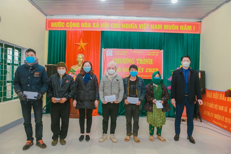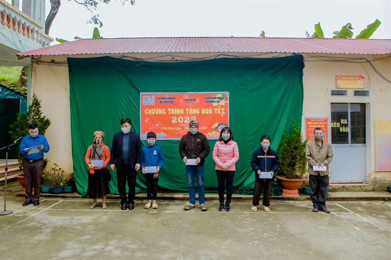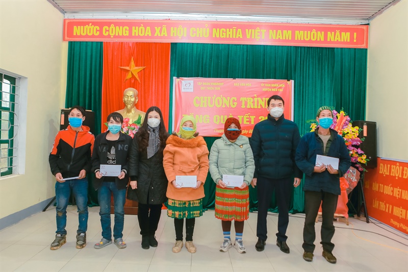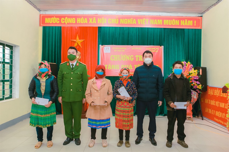 Năm nay, 300 suất quà Tết trị giá 600.000 đồng/suất, tổng giá trị 180 triệu đồng đã được trao tặng tận tay đồng bào dân tộc thiểu số, những gia đình thuộc hộ nghèo, cận nghèo thuộc các xã Thượng Phùng, xã Niêm Tòng, xã Niêm Sơn huyện Mèo Vạc, tỉnh Hà Giang.