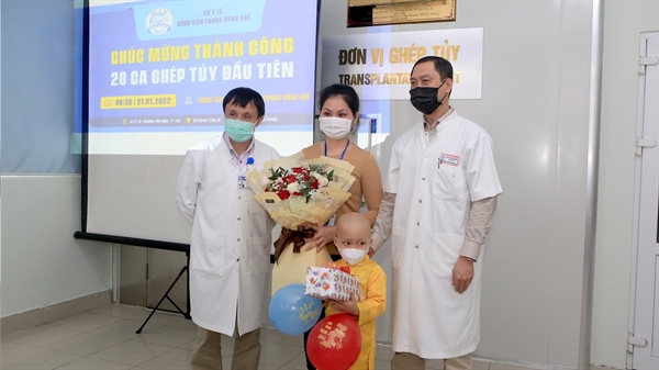 Ngày 21.1, Trung tâm Nhi, Bệnh viện Trung ương Huế đã tổ chức lễ ra viện cho cháu Trần Thiên P. (2 tuổi, đến từ TP.Nha Trang, tỉnh Khánh Hòa). Cháu P. là bệnh nhi thứ 20 được các bác sĩ tại Bệnh viện Trung ương Huế thực hiện ghép tế bào gốc thành công.