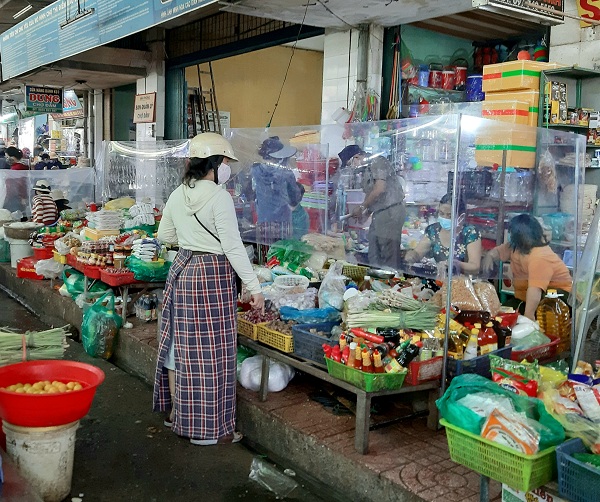 Các sạp hàng cần dựng vách ngăn (bằng nilong, mica...) nhằm đảm bảo an toàn phòng, chống dịch