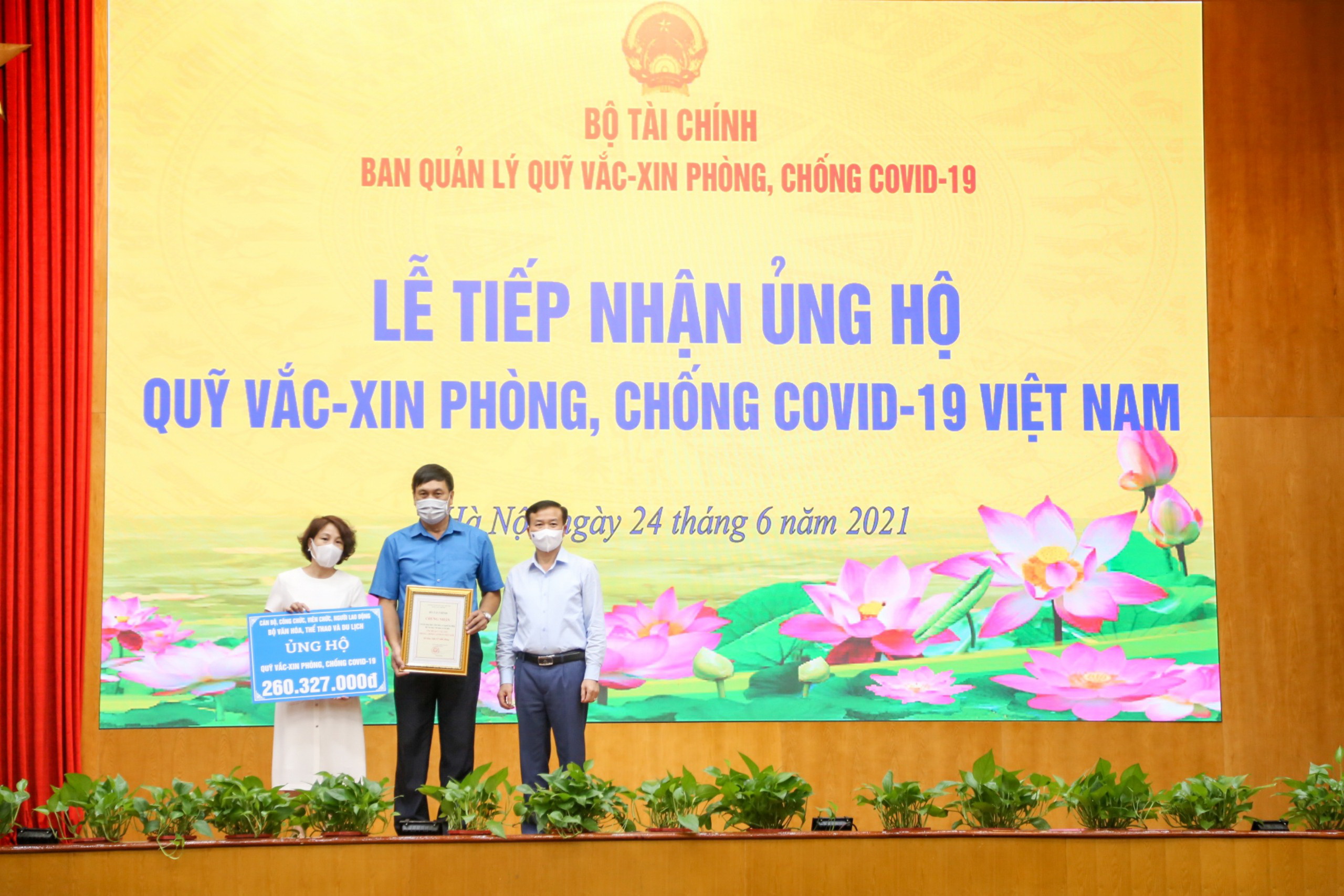 Trao số tiền ủng hộ cho đại diện Ban quản lý Quỹ vắcxin phòng chống Covid-19 (Bộ Tài chính), Phó Chủ tịch Phụ trách Công đoàn Bộ VHTTDL Trần Huy Toản chia sẻ: “Dịch Covid-19 đã gây ảnh hưởng nghiêm trọng tới đời sống kinh tế của đất nước nói chung và của ngành VHTTDL nói riêng. Đặc biệt là các khối nghệ thuật biểu diễn, bảo tàng, du lịch, thể thao chịu nhiều ảnh hưởng trực tiếp và gặp nhiều khó khăn. Mặc dù vậy, cán bộ công chức, viên chức, người lao động của ngành VHTTDL với tinh thần “tương thân tương ái, lá lành đùm lá rách, lá rách ít đùm lá rách nhiều” mong muốn đẩy lùi dịch bệnh đã chung tay quyên góp ủng hộ cùng Đảng, Nhà nước để đẩy lùi dịch bệnh. Đợt 1, ngày 29.5, Thứ trưởng Bộ VHTTDL Tạ Quang Đông đã chuyển 200 triệu đồng đến Ủy ban Trung ương Mặt trận Tổ quốc Việt Nam để ủng hộ công tác phòng, chống dịch Covid-19. Đợt 2 này, ngành VHTTDL tiếp tục ủng hộ số tiền 260.327.000 đồng vào Quỹ vắc xin phòng, chống Covid-19.