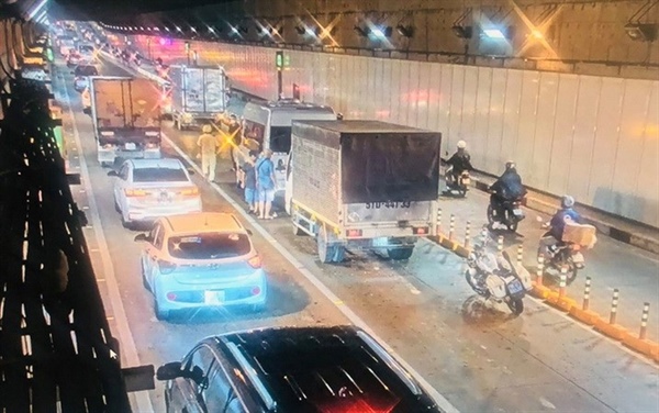 Bốn xe ôtô đâm nhau liên hoàn trong đường hầm vượt sông Sài Gòn