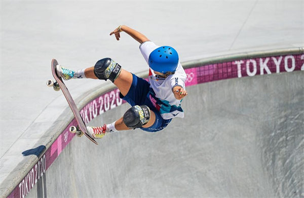 Bryce Wettstein (17 tuổi), đại diện nước Mỹ tranh tài ở bộ môn trượt ván tại Olympic Tokyo 2020. Cô sẽ trở thành giám đốc Sáng tạo của GEO và ra mắt dòng thời trang riêng. Ảnh: Raz Azraai