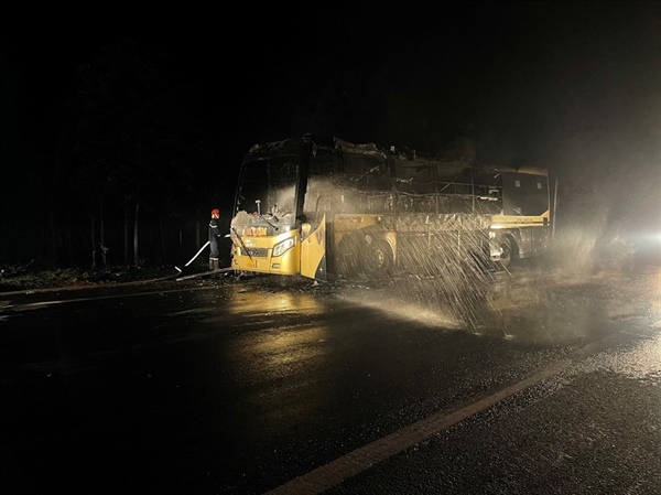 Đến 4h sáng, khi xe trên lưu thông qua địa bàn xã Đức Mạnh, huyện Đắk Mil thì bất ngờ bốc cháy. Phát hiện sự cố, tài xế đã dừng phương tiện, hô hoán hành khách tháo chạy rồi dập lửa nhưng không hiệu quả.