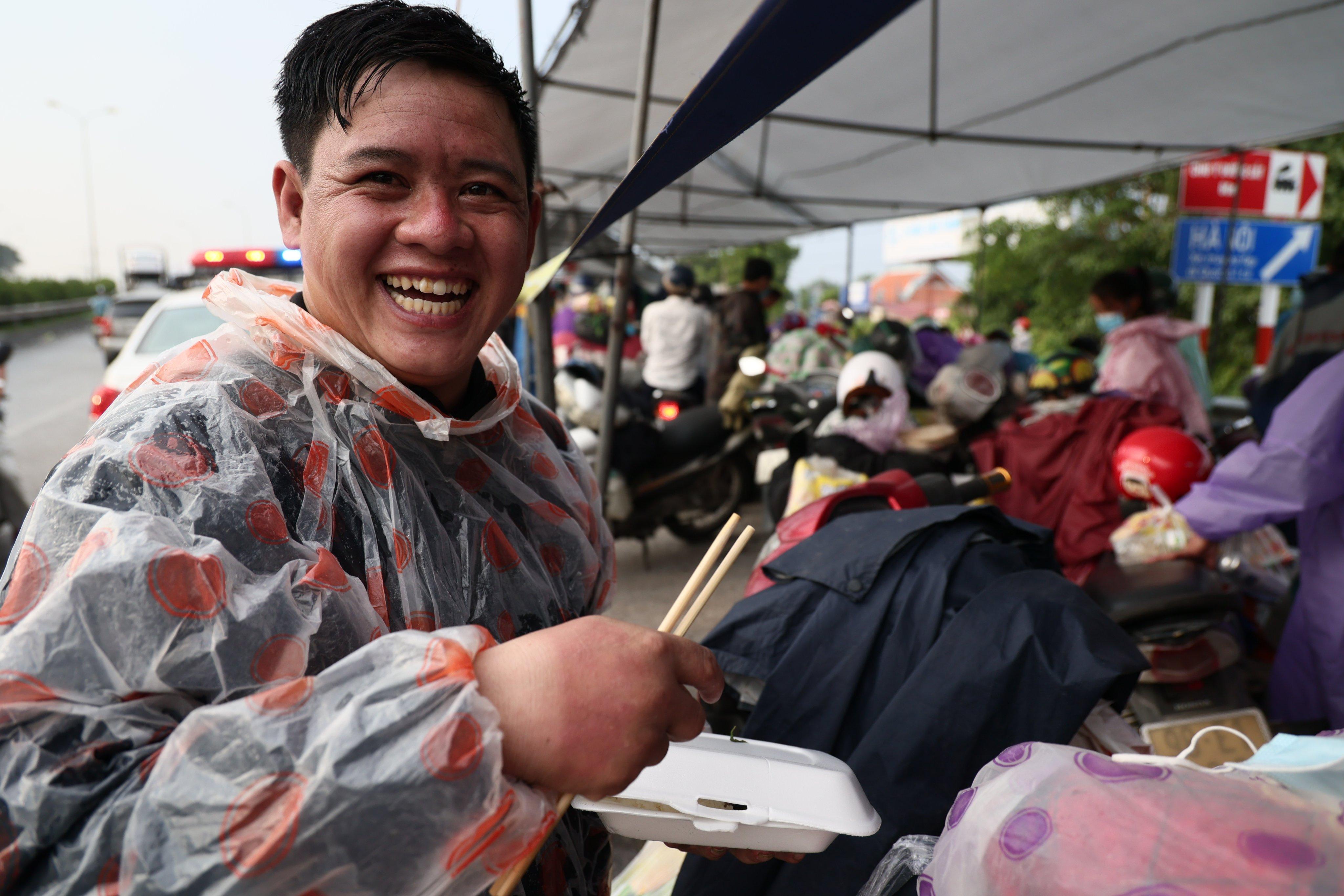Chị Hoàng Thị Mai (huyện Bảo Lâm, Cao Bằng) chia sẻ, về đến Hà Nội là đã về gần nhà hơn, cảm thấy yên tâm. Trên đường đi, nhiều lúc bị lạc đường nên phải cố đi, không có gì ăn, chỉ ngủ lại bên đường. Được các cô chú tiếp sức thì xúc động lắm. Còn anh Hoàng Minh Hiếu (huyện Võ Nhai, Thái Nguyên) cho hay, biết là đi đường từ miền Nam ra Bắc là rất vất vả nhưng không có cách nào khác, vì không có phương tiện giao thông công cộng. Trong khi di chuyển, nhiều lúc mệt, đau người, đau tay nhưng đi theo đoàn nên anh không dừng lại nghỉ được. Về đến Hà Nội anh và các anh chị em trong đoàn rất vui vì được tiếp nước, được ăn uống nên thấy khỏe lên rất nhiều.