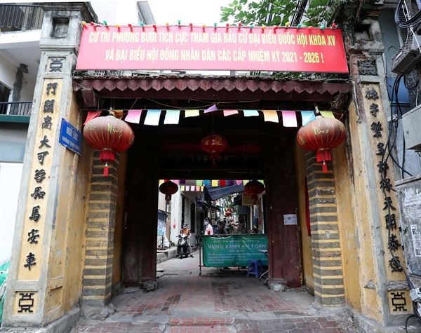 Tại cổng làng Hồ Khẩu ngõ 370 Thụy Khuê, Tây Hồ chốt Kiểm soát “Vùng xanh” an toàn do “Tổ Covid cộng đồng” quản lý luôn có người trực một ca, mỗi ca từ 2 đến 3h đồng hồ