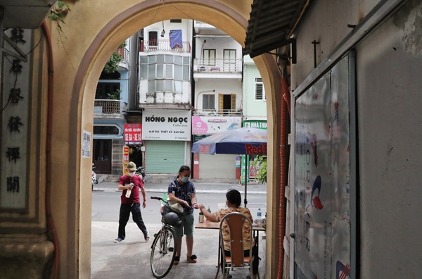 Chốt “Vùng xanh” làng Yên Thái, phường Bưởi – quận Tây Hồ do “Tổ Covid cộng đồng” tự quản luôn có từ hai đến 3 người chốt trực để kiểm tra và nhắc nhở người dân thực hiện nghiêm Chỉ thị 16 của Chính phủ và Chỉ thị 17 của thành phố Hà Nội