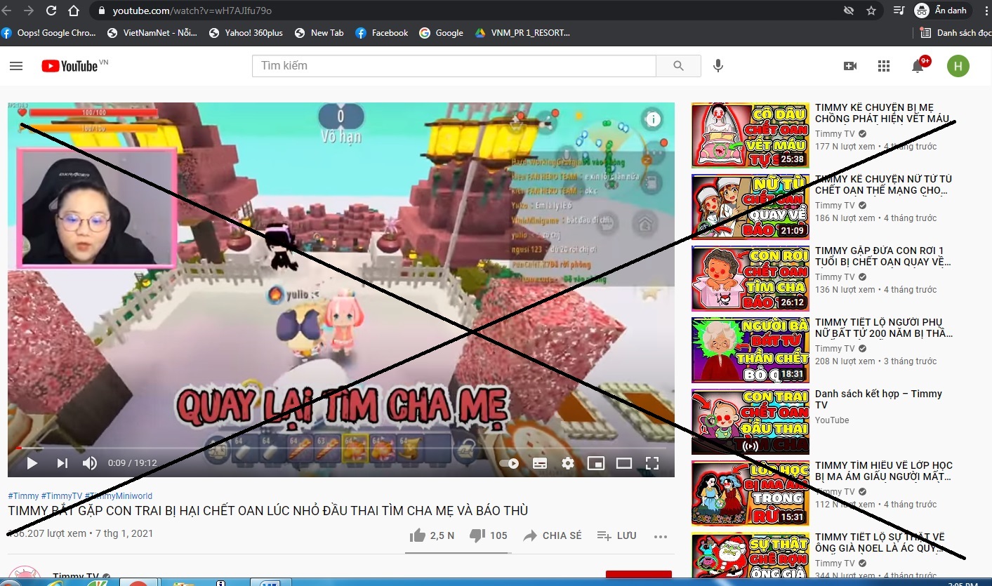 Đề nghị xử lý kênh youtube có nội dung bạo lực, kinh dị không phù hợp với trẻ em