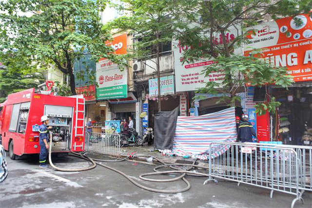 Hiện trường vụ cháy ở phố Tôn Đức Thắng, Hà Nội. Ảnh: TTXVN
