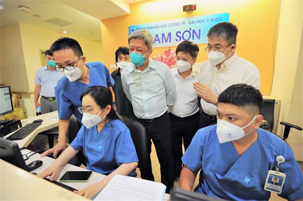 Thứ trưởng Bộ Y tế Nguyễn Trường Sơn kiểm tra tại Trung tâm Hồi sức tích cực người bệnh Covid-19 thuộc Bệnh viện Đại học Y Dược TP.HCM