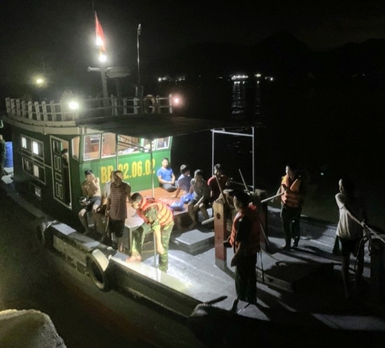 Lực lượng cứu nạn của Đồn Biên phòng Cát Bà đã đưa 7 thuyền viên lên tàu an toàn