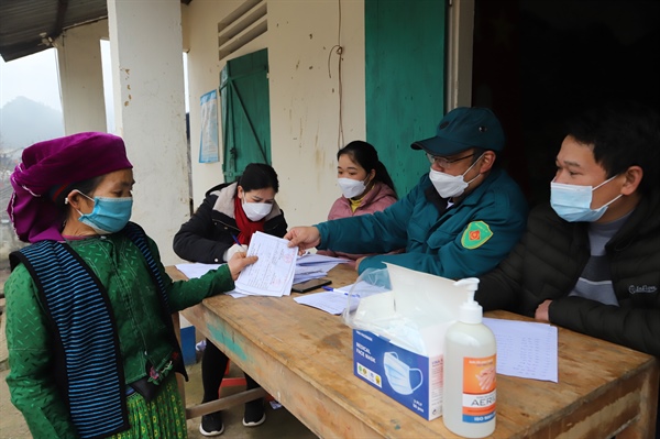 Anh Nông Văn Ngay, Chủ tịch UBND xã Giàng Chu Phìn kiểm tra lịch sử tiêm chủng của đồng bào trong ngày bà con tham gia chợ phiên